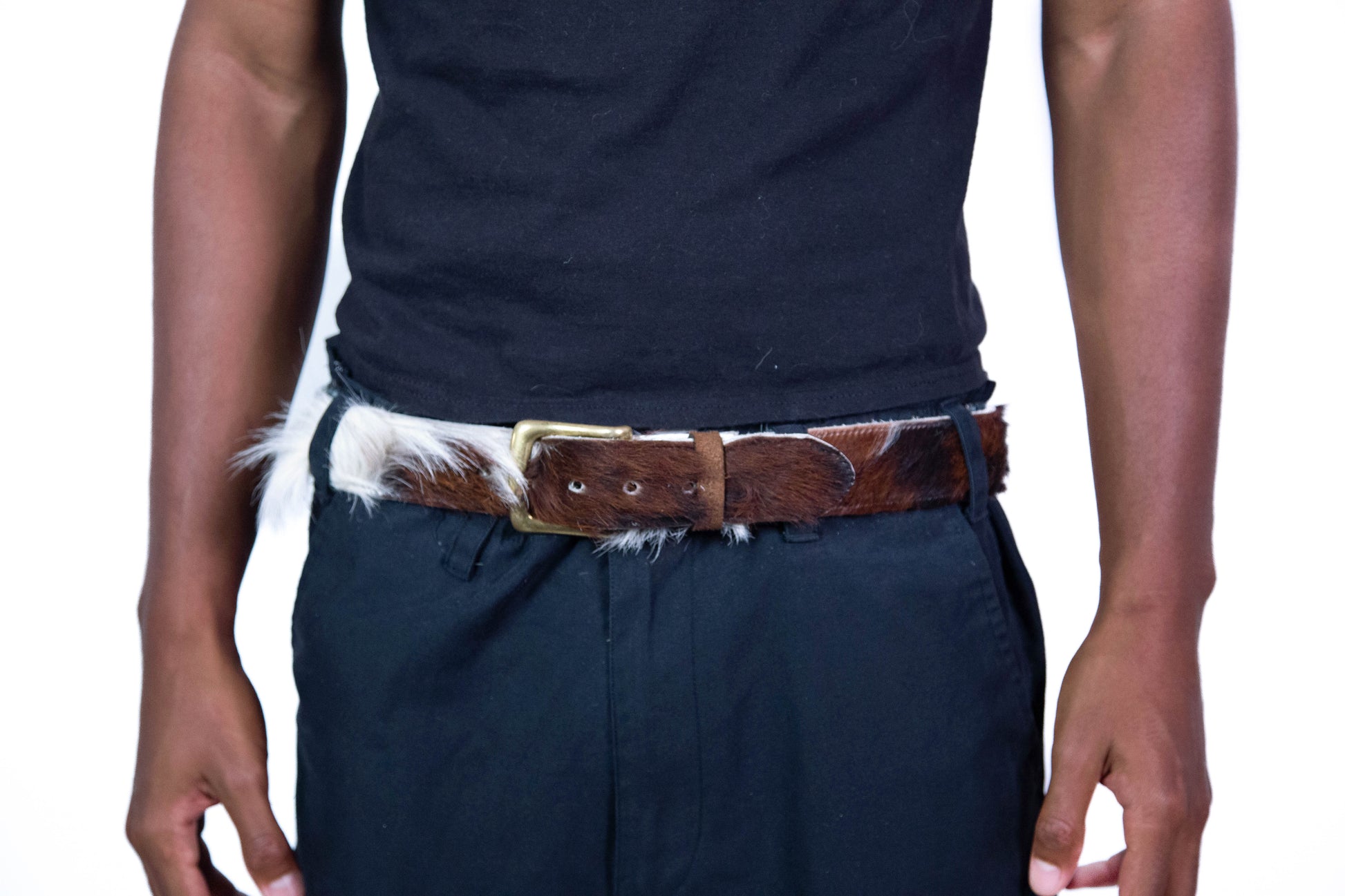100% genuine cow fur, handmade in Montreal with recycled belts.